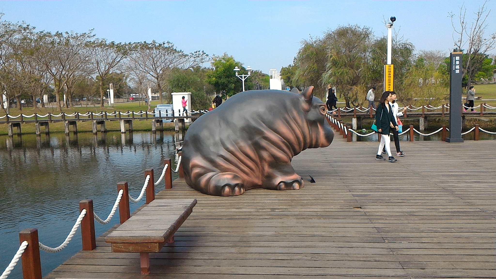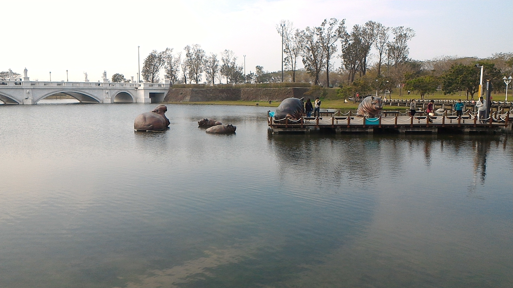 - カバの親子と水鳥とオリンポス橋